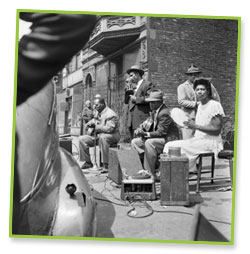 Beginning around 1900, Maxwell Street on the West Side was one of Chicago's most interesting places to shop. People could buy anything from shoestrings to food to expensive clothing. The vendors at Maxwell Street, immigrants and migrants, came from many different places and backgrounds to sell their products. By the 1950s, the market was a tourist attraction where thousands of people gathered to listen to the blues, hunt for bargains, and eat at the hot dog stands.