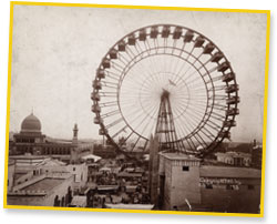 In line, they watched the great wheel and its 36 cars creak around. The top was 250 feet off the ground, far higher than anything else in Chicago. "This is an amazing invention," Grandpa marveled.
