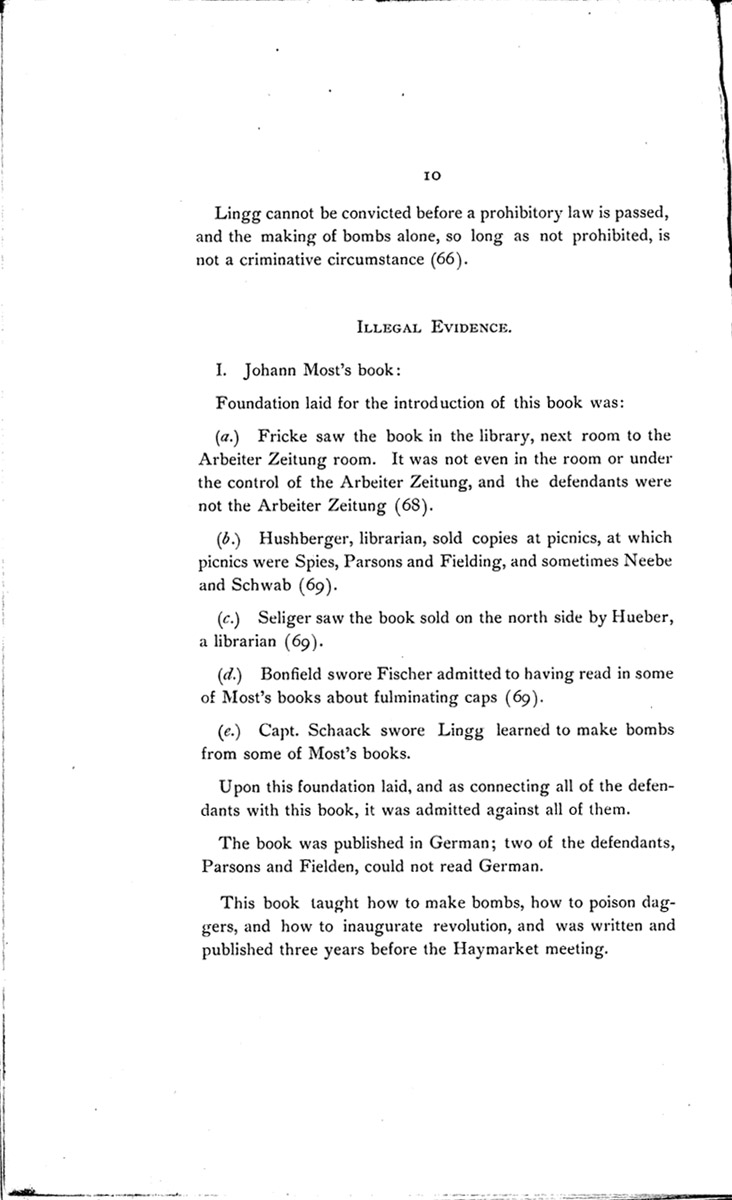 The anarchists' cases: synopsis of Mr. Swett's oral argument. Page 10 Higher Quality Image (126K) | Previous Image | Next Image Return to Text | Return to Published Sources TOC | Return to the HADC Table of Contents