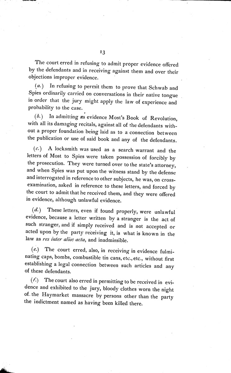 The anarchists' cases: synopsis of Mr. Swett's oral argument. Page 13 Higher Quality Image (177K) | Previous Image | Next Image Return to Text | Return to Published Sources TOC | Return to the HADC Table of Contents