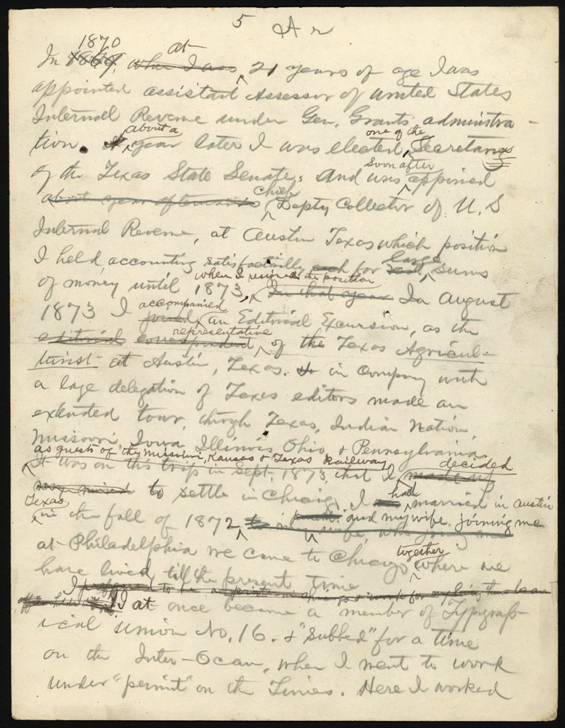 Albert R. Parsons autobiography Page 5 Higher Quality Image (274K) | Previous Image | Next Image Return to Text | Return to Manuscripts TOC | Return to the HADC Table of Contents