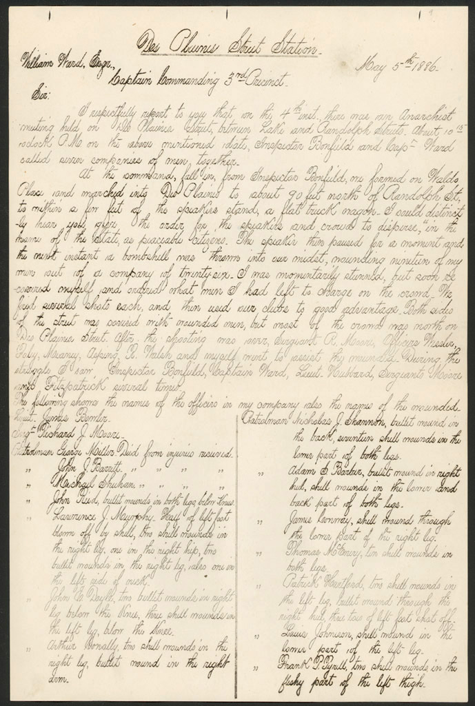 Inspector John Bonfield report to Frederick Ebersold, General Superintendent of Police Page 9