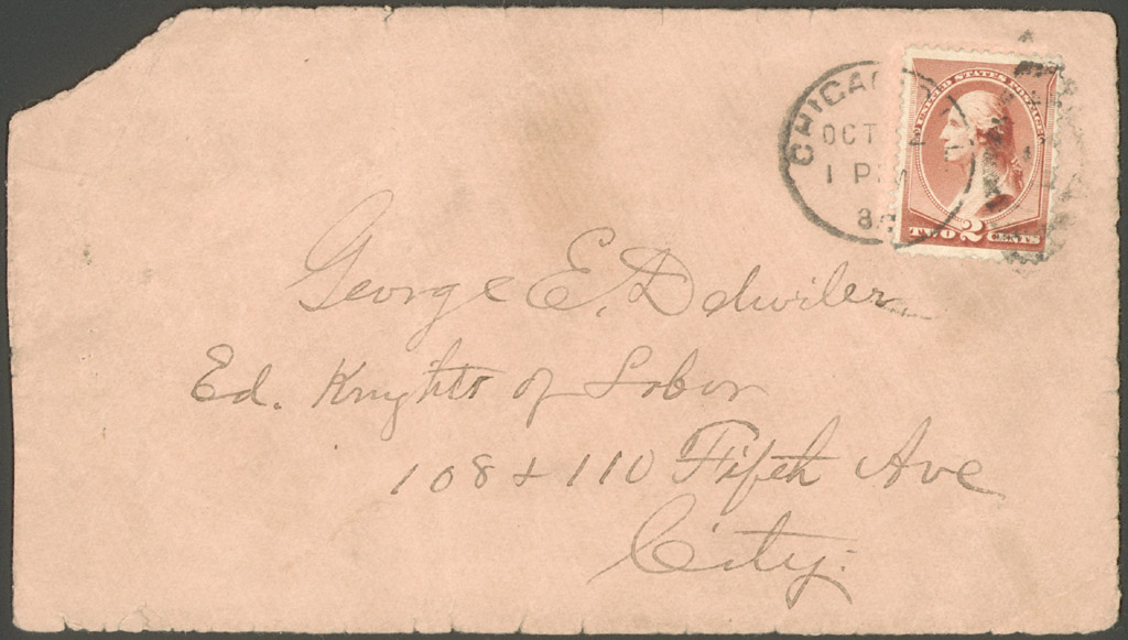 Albert R. Parsons letter to publishers, Knights of Labor, 1887 Oct. 3. Envelope