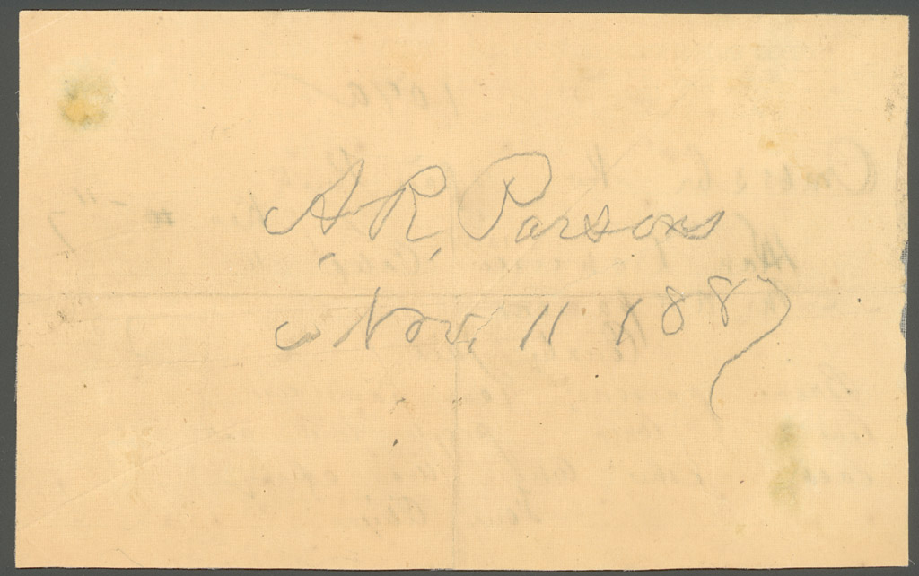 Telegram to Albert Parsons from "Four Citizens", 1887 Nov. 11. Back