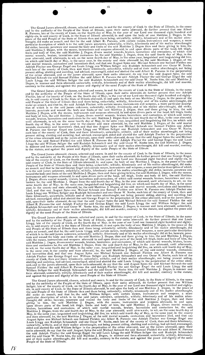 Grand jury indictments for murder Volume 1, Page 18 Higher Quality Image (428K) | Previous Image | Next Image Return to Text | Return to Trial TOC | Return to the HADC Table of Contents