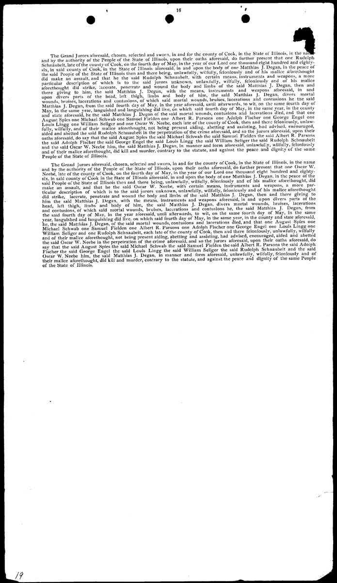 Grand jury indictments for murder Volume 1, Page 19 Higher Quality Image (198K) | Previous Image | Next Image Return to Text | Return to Trial TOC | Return to the HADC Table of Contents
