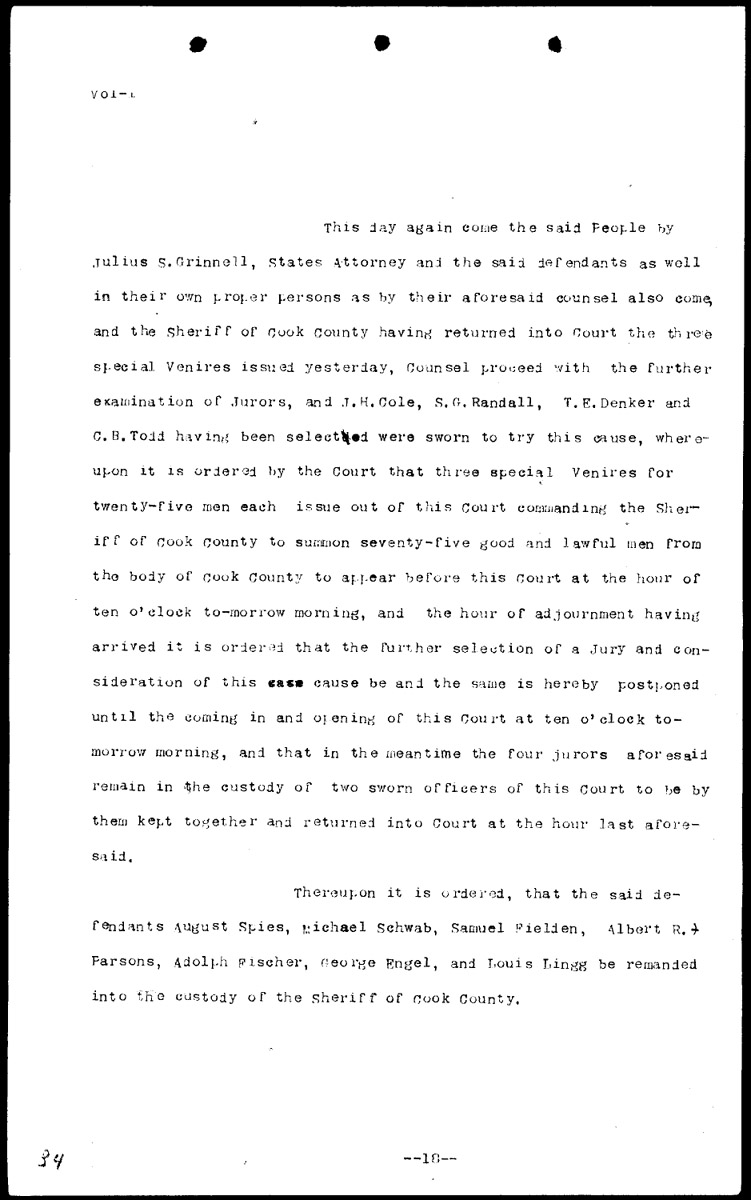 Synopses of court proceedings Volume 1, Page 34 Higher Quality Image (152K) | Previous Image | Next Image Return to Text | Return to Trial TOC | Return to the HADC Table of Contents