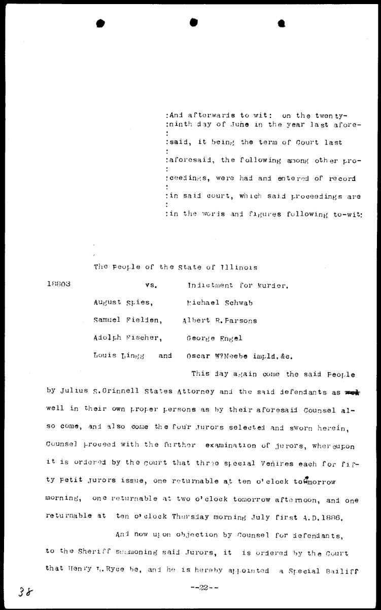 Synopses of court proceedings Volume 1, Page 38 Higher Quality Image (135K) | Previous Image | Next Image Return to Text | Return to Trial TOC | Return to the HADC Table of Contents