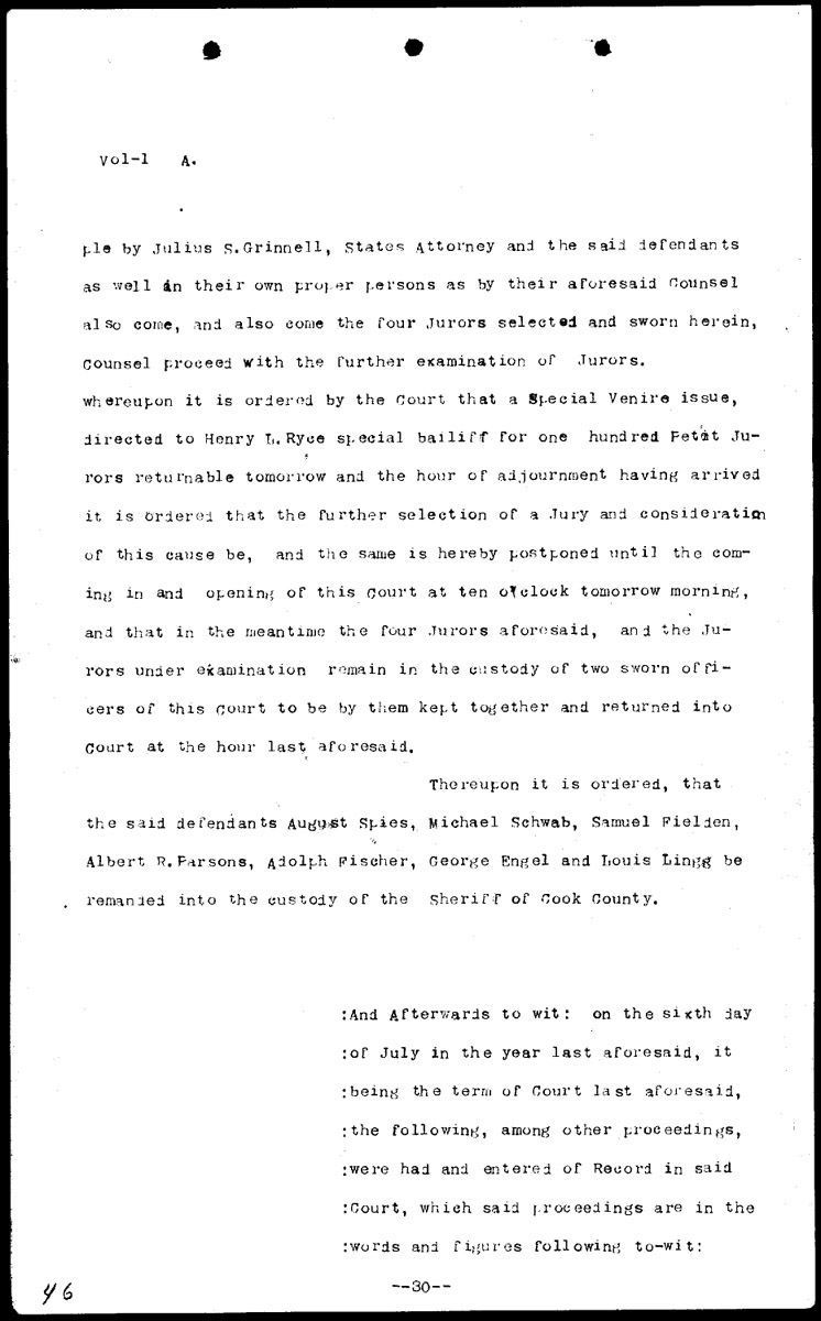 Synopses of court proceedings Volume 1, Page 46 Higher Quality Image (152K) | Previous Image | Next Image Return to Text | Return to Trial TOC | Return to the HADC Table of Contents