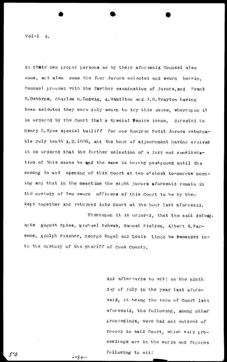 Synopses of court proceedings Volume 1, Page 50 Higher Quality Image (153K) | Previous Image | Next Image Return to Text | Return to Trial TOC | Return to the HADC Table of Contents