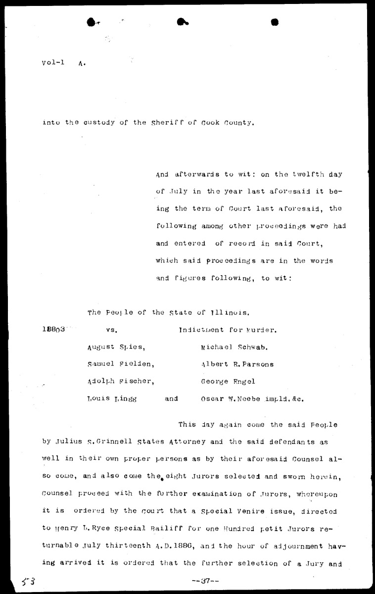 Synopses of court proceedings Volume 1, Page 53 Higher Quality Image (128K) | Previous Image | Next Image Return to Text | Return to Trial TOC | Return to the HADC Table of Contents