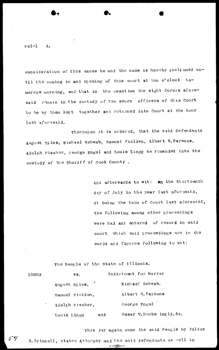 Synopses of court proceedings Volume 1, Page 54 Higher Quality Image (132K) | Previous Image | Next Image Return to Text | Return to Trial TOC | Return to the HADC Table of Contents