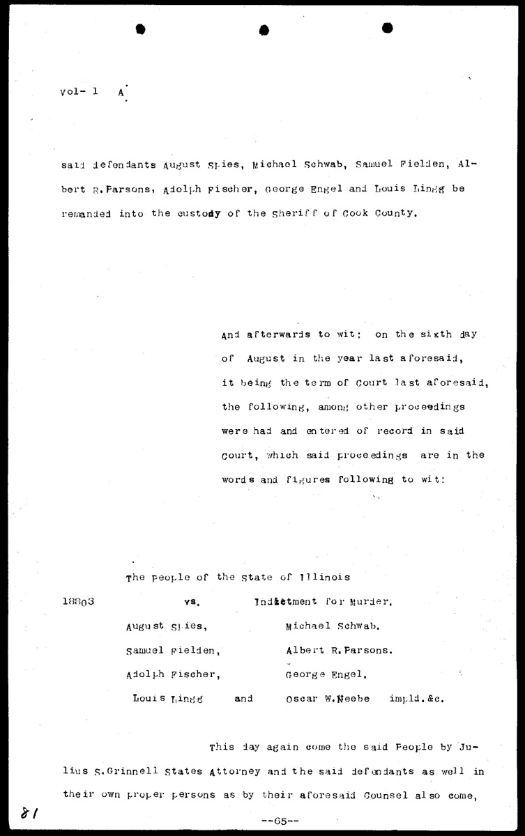 Synopses of court proceedings Volume 1, Page 81 Higher Quality Image (107K) | Previous Image | Next Image Return to Text | Return to Trial TOC | Return to the HADC Table of Contents