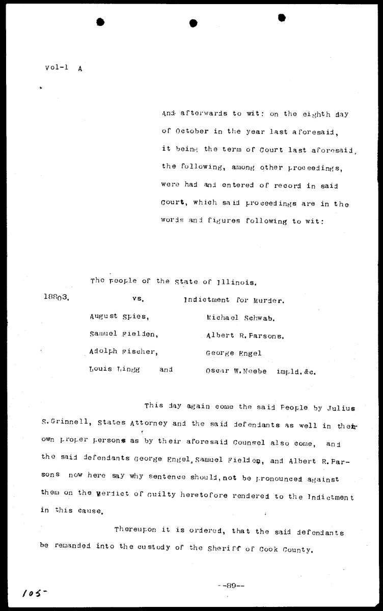 Synopses of court proceedings Volume 1, Page 105 Higher Quality Image (117K) | Previous Image | Next Image Return to Text | Return to Trial TOC | Return to the HADC Table of Contents