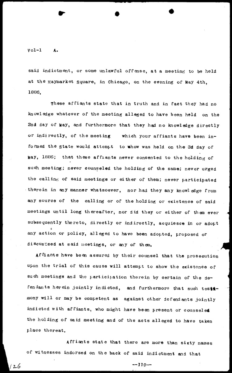 Bill of exceptions filed by counsel for the defense Volume 1, Page 126 Higher Quality Image (185K) | Previous Image | Next Image Return to Text | Return to Trial TOC | Return to the HADC Table of Contents