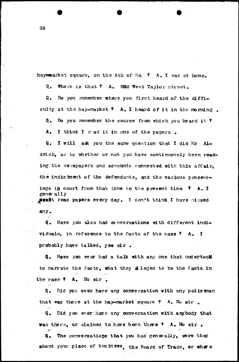 Examination of Sydney Warner and court discussion Volume A, Page 39 Higher Quality Image (174K) | Previous Image | Next Image Return to Text | Return to Trial TOC | Return to the HADC Table of Contents