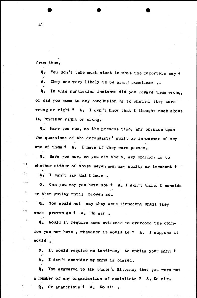 Examination of Sydney Warner and court discussion Volume A, Page 41 Higher Quality Image (159K) | Previous Image | Next Image Return to Text | Return to Trial TOC | Return to the HADC Table of Contents