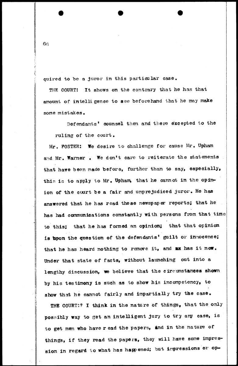 Examination of W. P. Upham and court discussion Volume A, Page 66 Higher Quality Image (186K) | Previous Image | Next Image Return to Text | Return to Trial TOC | Return to the HADC Table of Contents