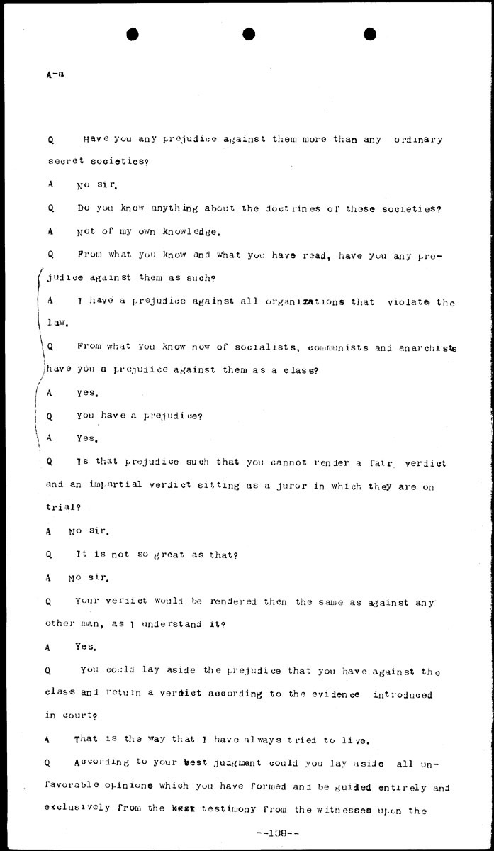 Examination of James H. Cole (first appearance) Volume A, Page 138 Higher Quality Image (120K) | Previous Image | Next Image Return to Text | Return to Trial TOC | Return to the HADC Table of Contents
