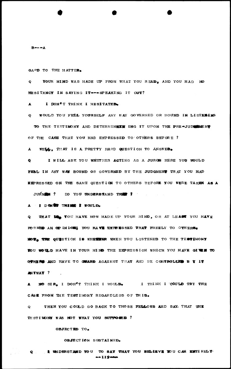Examination of Theodore Denker Volume B, Page 118 Higher Quality Image (142K) | Previous Image | Next Image Return to Text | Return to Trial TOC | Return to the HADC Table of Contents