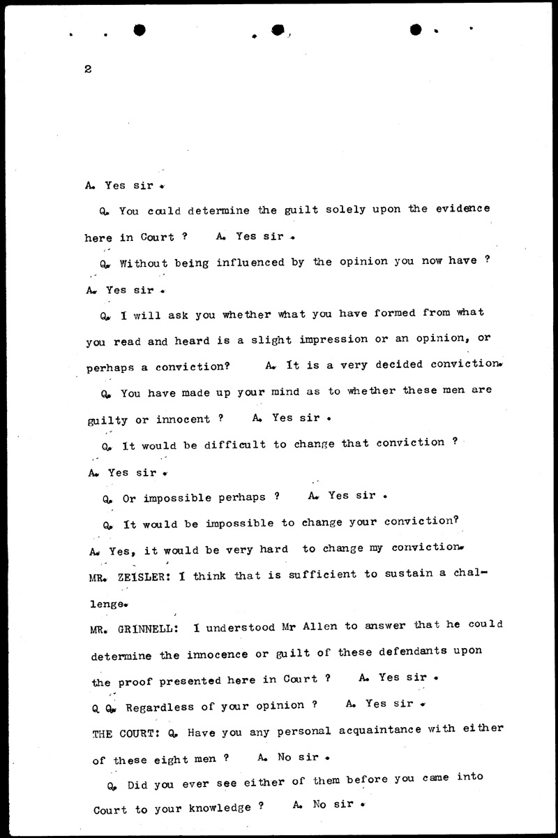 Examination of W. D. Allen and court discussion Volume C, Page 2 Higher Quality Image (149K) | Previous Image | Next Image Return to Text | Return to Trial TOC | Return to the HADC Table of Contents