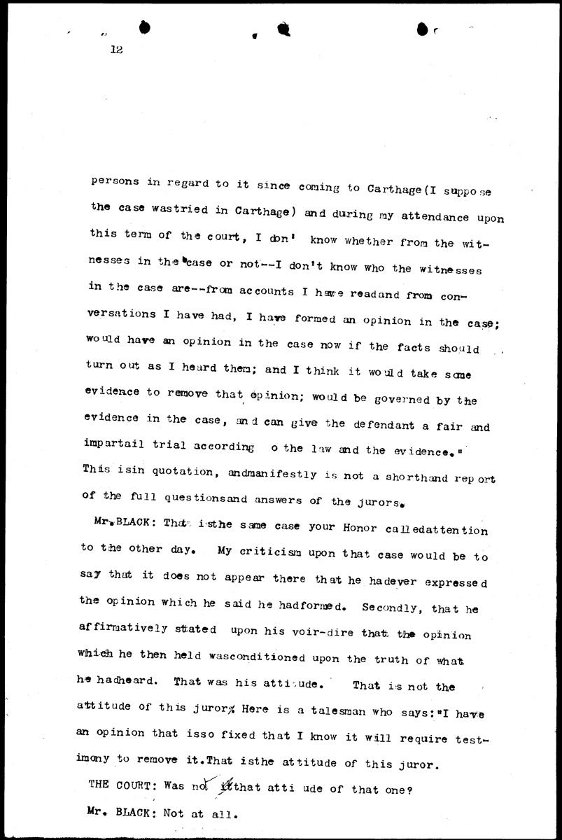 Examination of W. D. Allen and court discussion Volume C, Page 12 Higher Quality Image (178K) | Previous Image | Next Image Return to Text | Return to Trial TOC | Return to the HADC Table of Contents