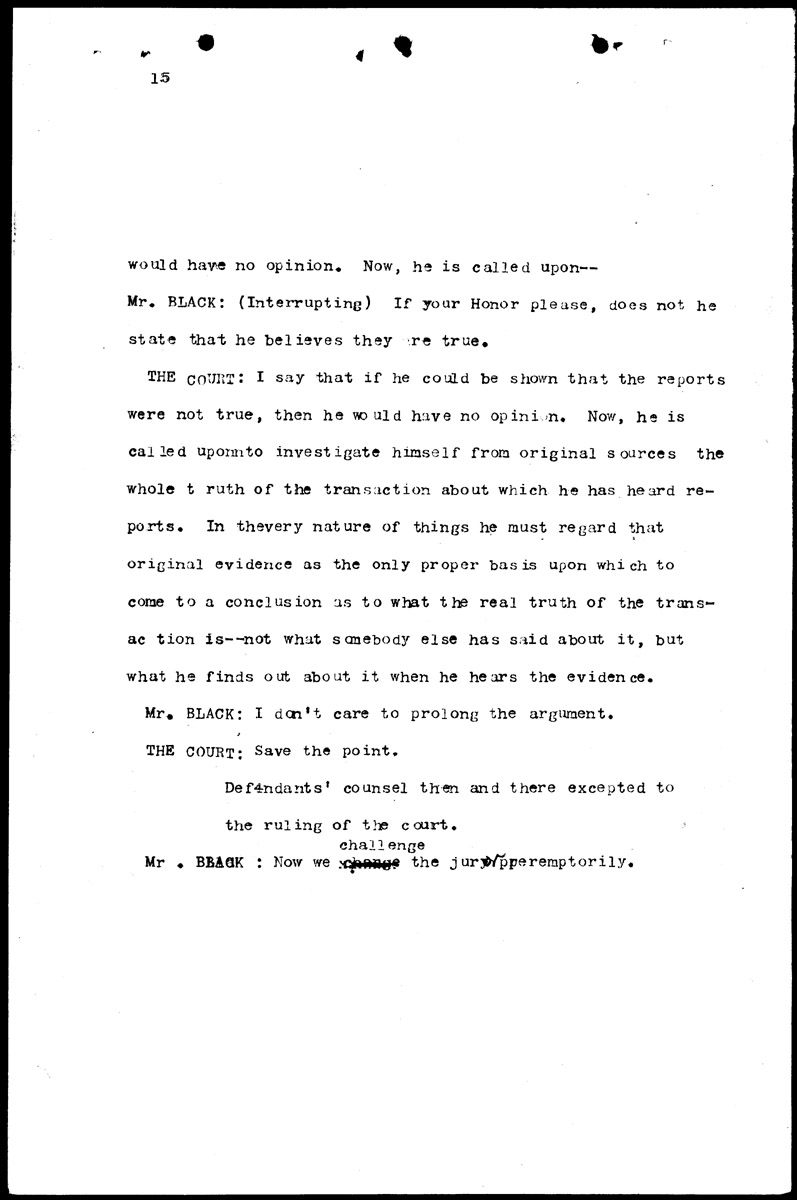 Examination of W. D. Allen and court discussion Volume C, Page 15 Higher Quality Image (121K) | Previous Image | Next Image Return to Text | Return to Trial TOC | Return to the HADC Table of Contents