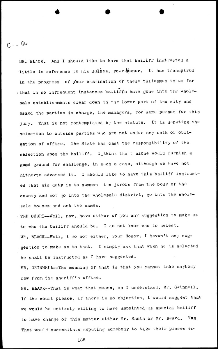 Court Discussion Volume C, Page 185 Higher Quality Image (177K) | Previous Image | Next Image Return to Text | Return to Trial TOC | Return to the HADC Table of Contents