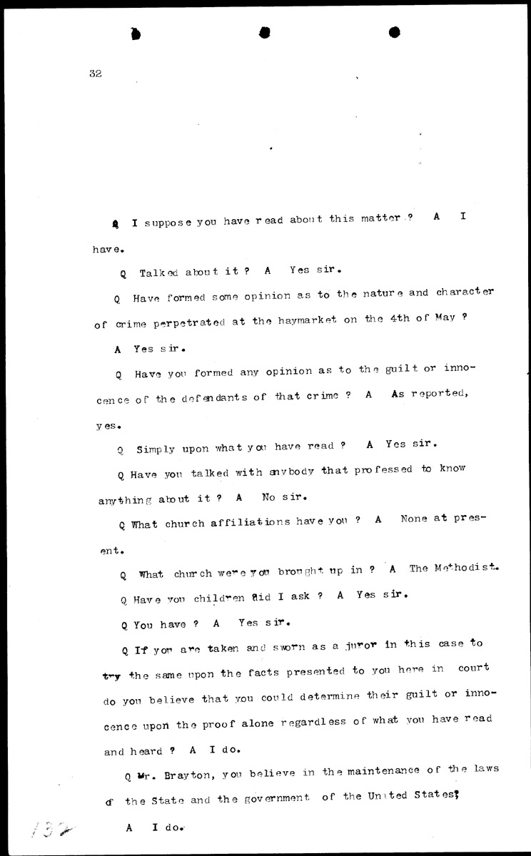 Examination of J. H. Brayton (first appearance) Volume F, Page 132 Higher Quality Image (117K) | Previous Image | Next Image Return to Text | Return to Trial TOC | Return to the HADC Table of Contents