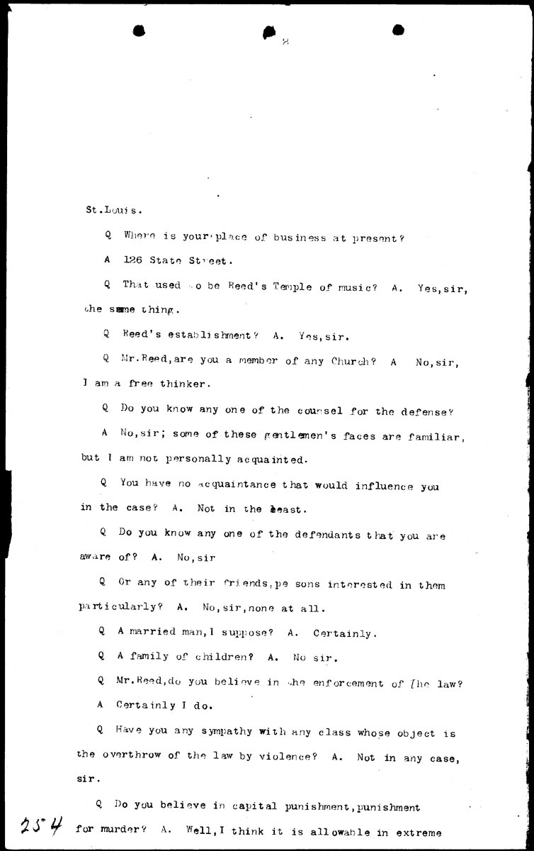 Examination of Alanson H. Reed (first appearance) Volume G, Page 254 Higher Quality Image (123K) | Previous Image | Next Image Return to Text | Return to Trial TOC | Return to the HADC Table of Contents
