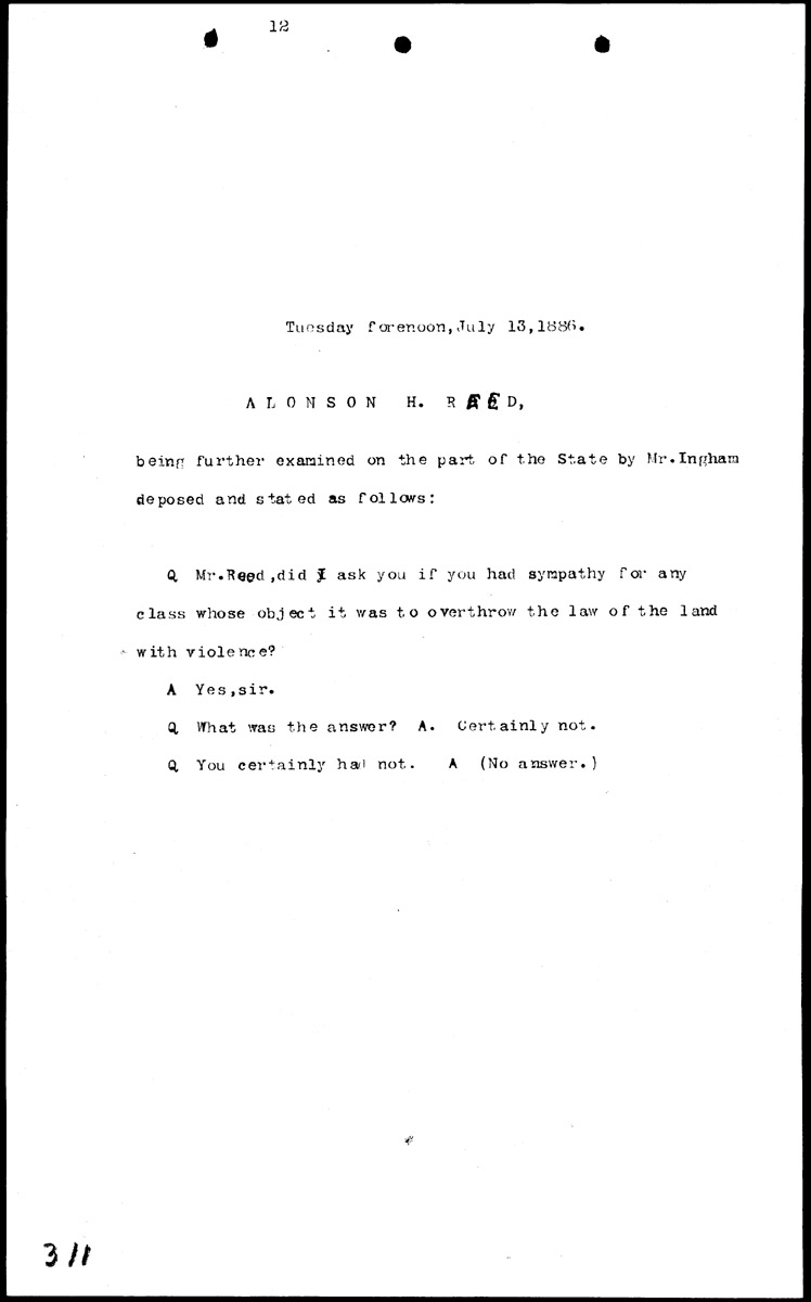 Examination of Alanson H. Reed (second appearance) Volume G, Page 311 Higher Quality Image (63K) | Previous Image | Next Image Return to Text | Return to Trial TOC | Return to the HADC Table of Contents