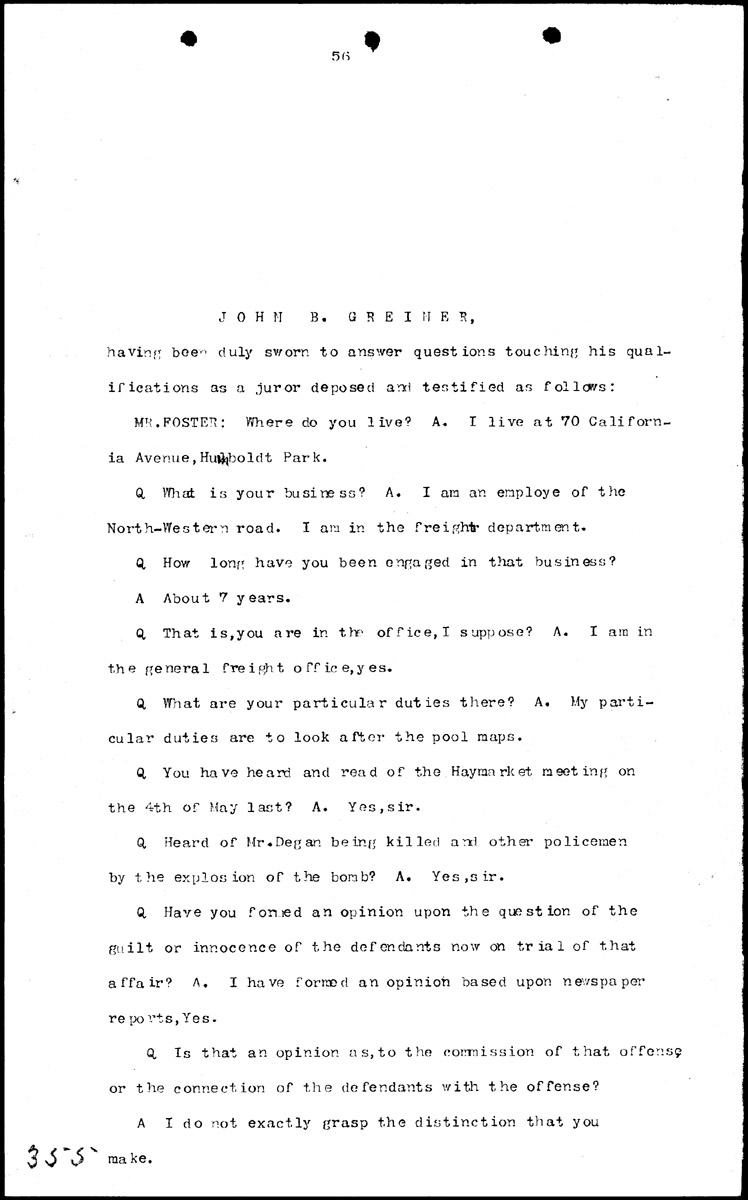 Examination of John B. Greiner (first appearance) Volume G, Page 355 Higher Quality Image (132K) | Previous Image | Next Image Return to Text | Return to Trial TOC | Return to the HADC Table of Contents