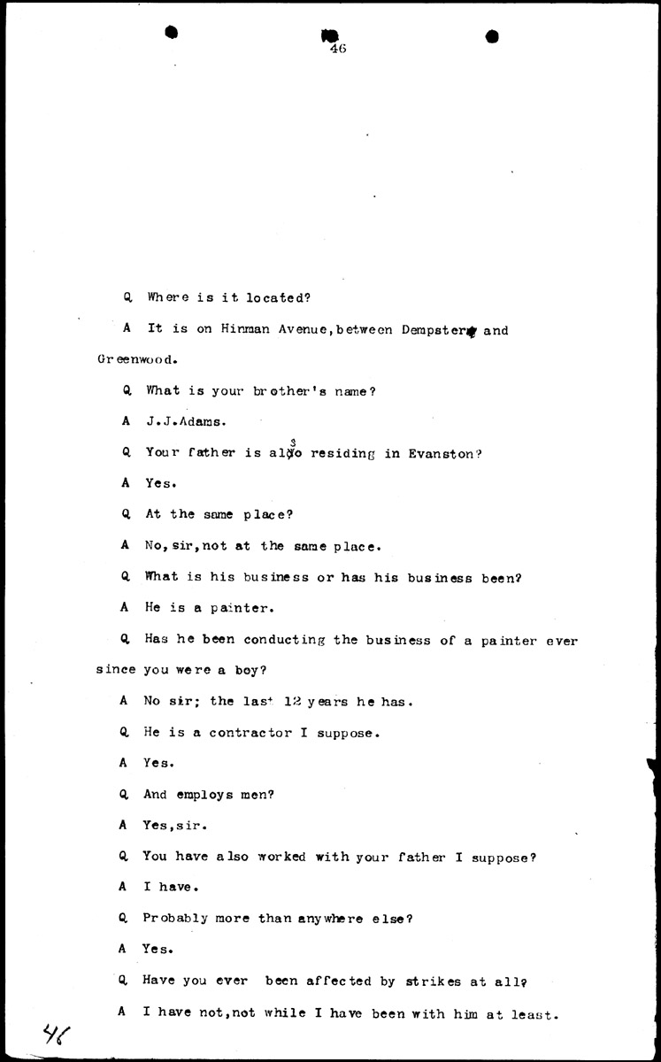 Examination of G. W. Adams (first appearance resumed) Volume H, Page 46 Higher Quality Image (96K) | Previous Image | Next Image Return to Text | Return to Trial TOC | Return to the HADC Table of Contents
