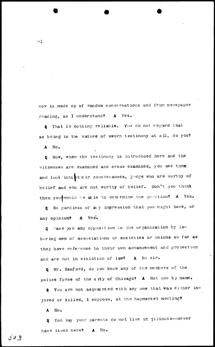 Examination of Harry T. Sandford Volume H, Page 303 Higher Quality Image (127K) | Previous Image | Next Image Return to Text | Return to Trial TOC | Return to the HADC Table of Contents