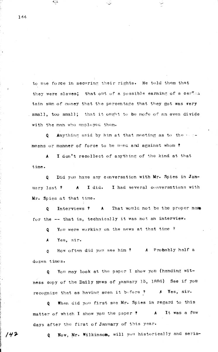 Testimony of Harry Wilkinson Volume J, Page 142 Higher Quality Image (95K) | Previous Image | Next Image Return to Text | Return to Trial TOC | Return to the HADC Table of Contents