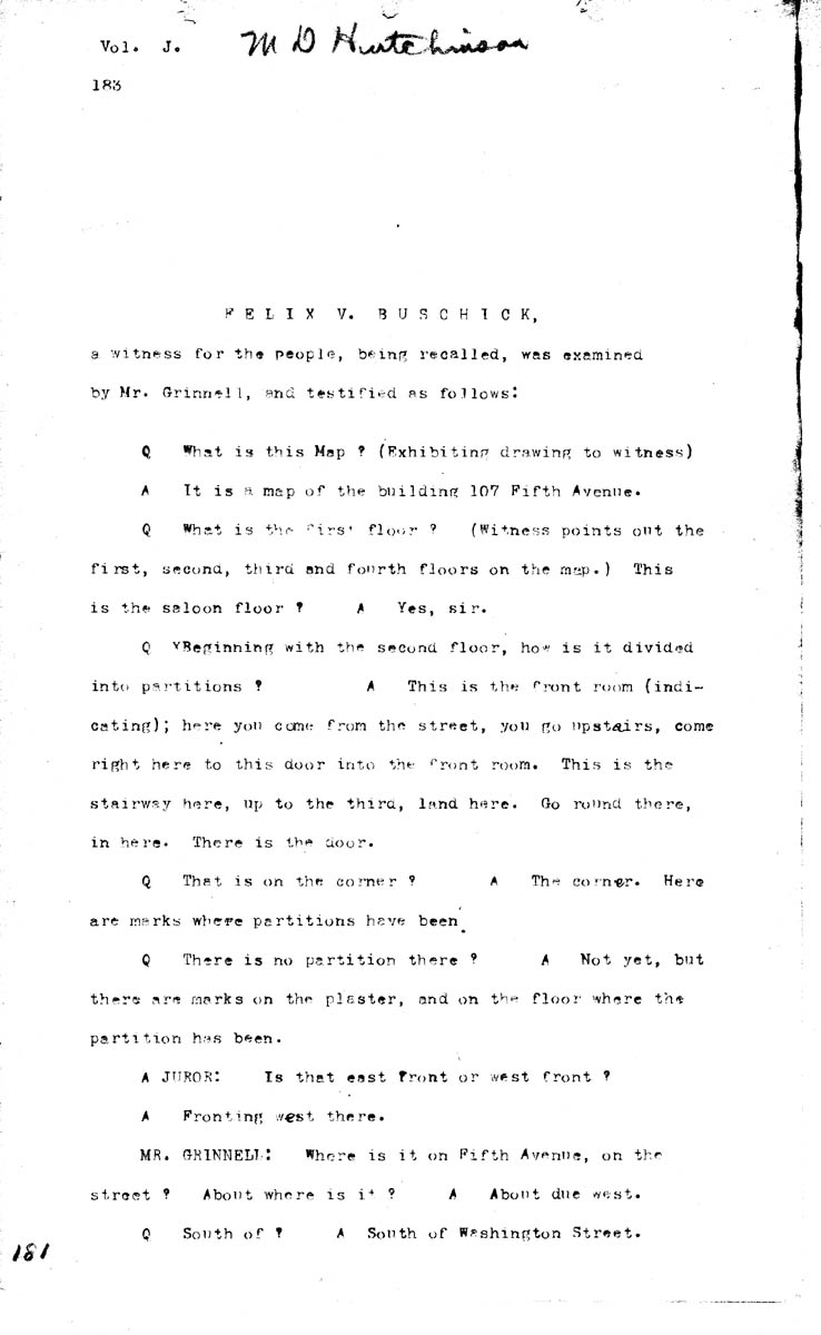 Testimony of Felix V. Bushick (third appearance) Volume J, Page 181 Higher Quality Image (91K) | Previous Image | Next Image Return to Text | Return to Trial TOC | Return to the HADC Table of Contents