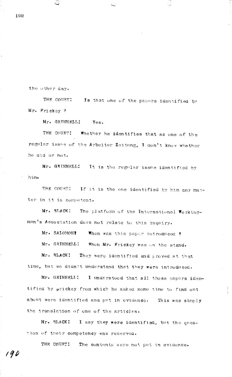 Court Discussion - Defense objection over introduction of certain evidence Volume J, Page 190 Higher Quality Image (81K) | Previous Image | Next Image Return to Text | Return to Trial TOC | Return to the HADC Table of Contents