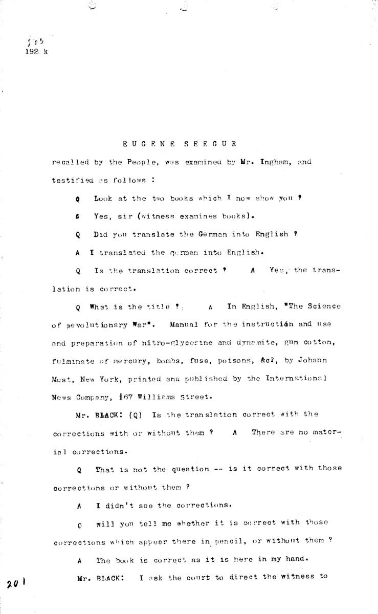 Testimony of Eugene Seeger (second appearance) Volume J, Page 201
