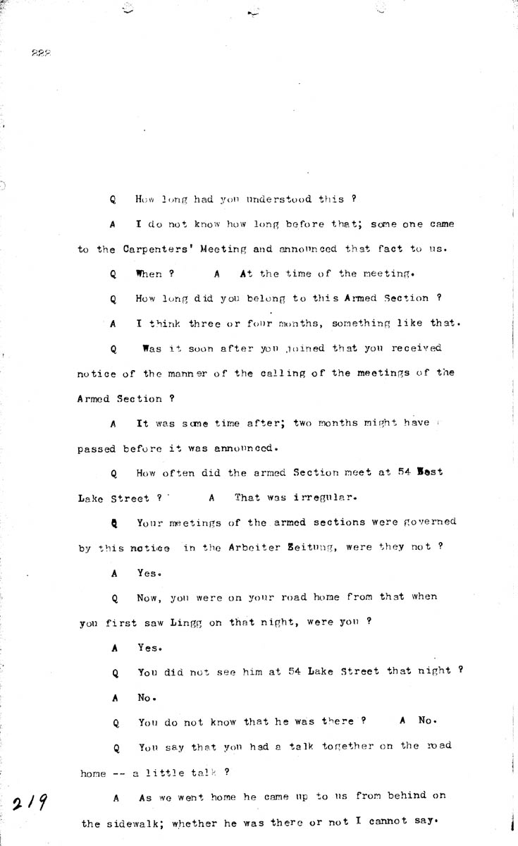 Testimony of Gustav Lehman Volume J, Page 219 Higher Quality Image (89K) | Previous Image | Next Image Return to Text | Return to Trial TOC | Return to the HADC Table of Contents