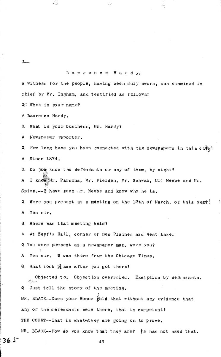 Testimony of Lawrence Hardy Volume J, Page 365 Higher Quality Image (95K) | Previous Image | Next Image Return to Text | Return to Trial TOC | Return to the HADC Table of Contents