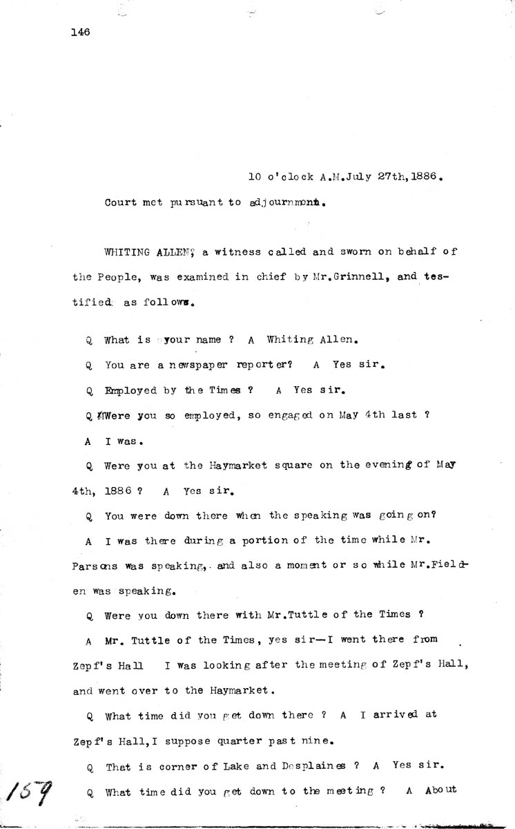 Testimony of Whiting Allen (first appearance) Volume K, Page 159 Higher Quality Image (93K) | Previous Image | Next Image Return to Text | Return to Trial TOC | Return to the HADC Table of Contents