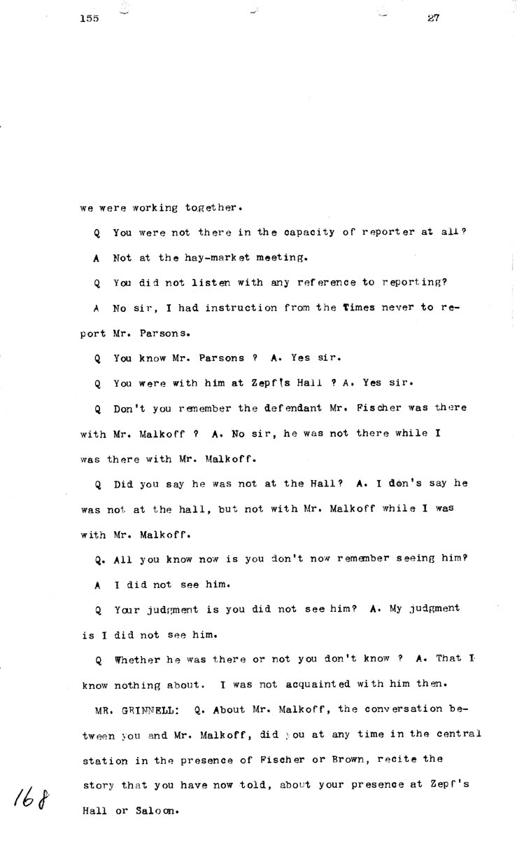 Testimony of Whiting Allen (first appearance) Volume K, Page 168 Higher Quality Image (91K) | Previous Image | Next Image Return to Text | Return to Trial TOC | Return to the HADC Table of Contents