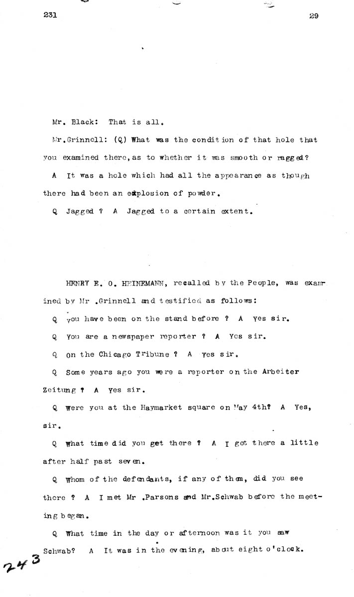 Testimony of W. C. MetznerTestimony of Henry E. O. Heinemann (second appearance) Volume K, Page 243
