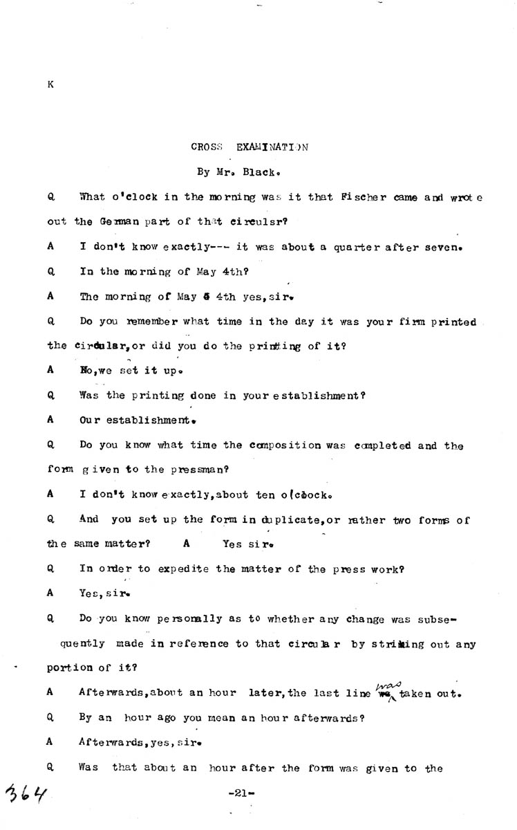 Testimony of August Huen Volume K, Page 364