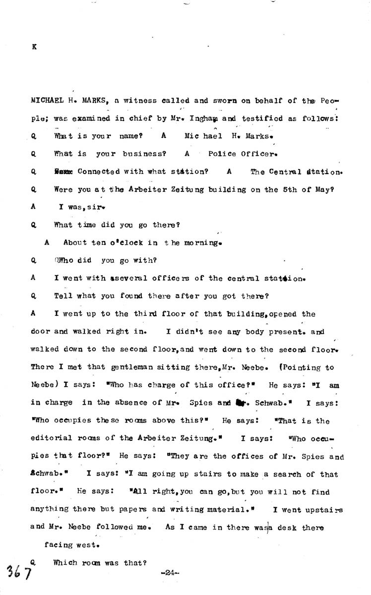 Testimony of Michael H. Marks Volume K, Page 367