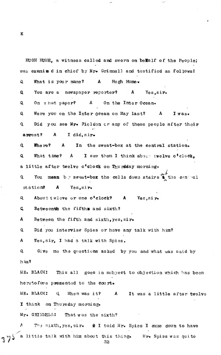 Testimony of Hugh Hume Volume K, Page 375