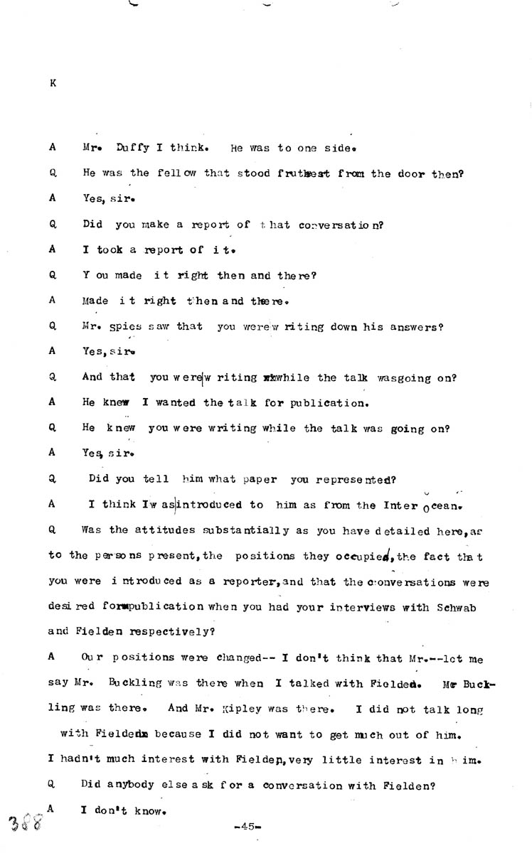 Testimony of Hugh Hume Volume K, Page 388