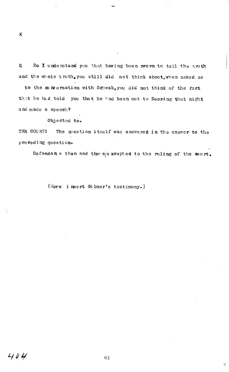 Testimony of Hugh Hume Volume K, Page 404 Higher Quality Image (50K) | Previous Image | Next Image Return to Text | Return to Trial TOC | Return to the HADC Table of Contents