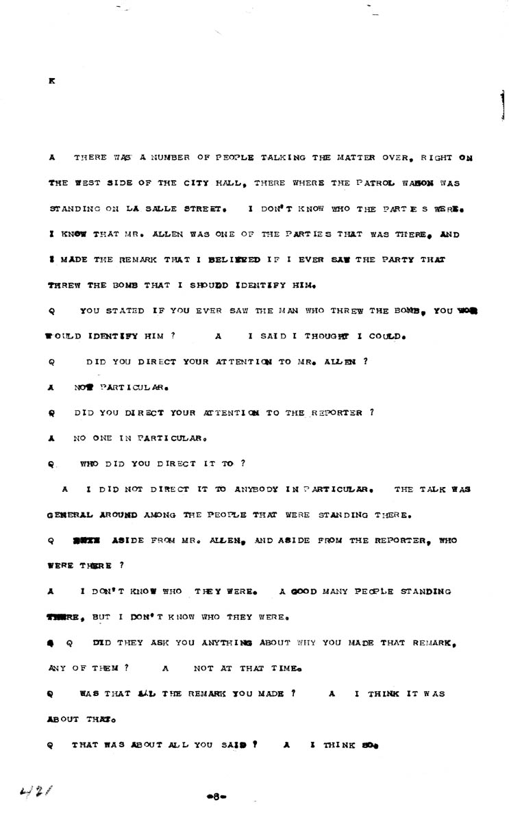 Testimony of Harry L. Gilmer (first appearance) Volume K, Page 421 Higher Quality Image (94K) | Previous Image | Next Image Return to Text | Return to Trial TOC | Return to the HADC Table of Contents