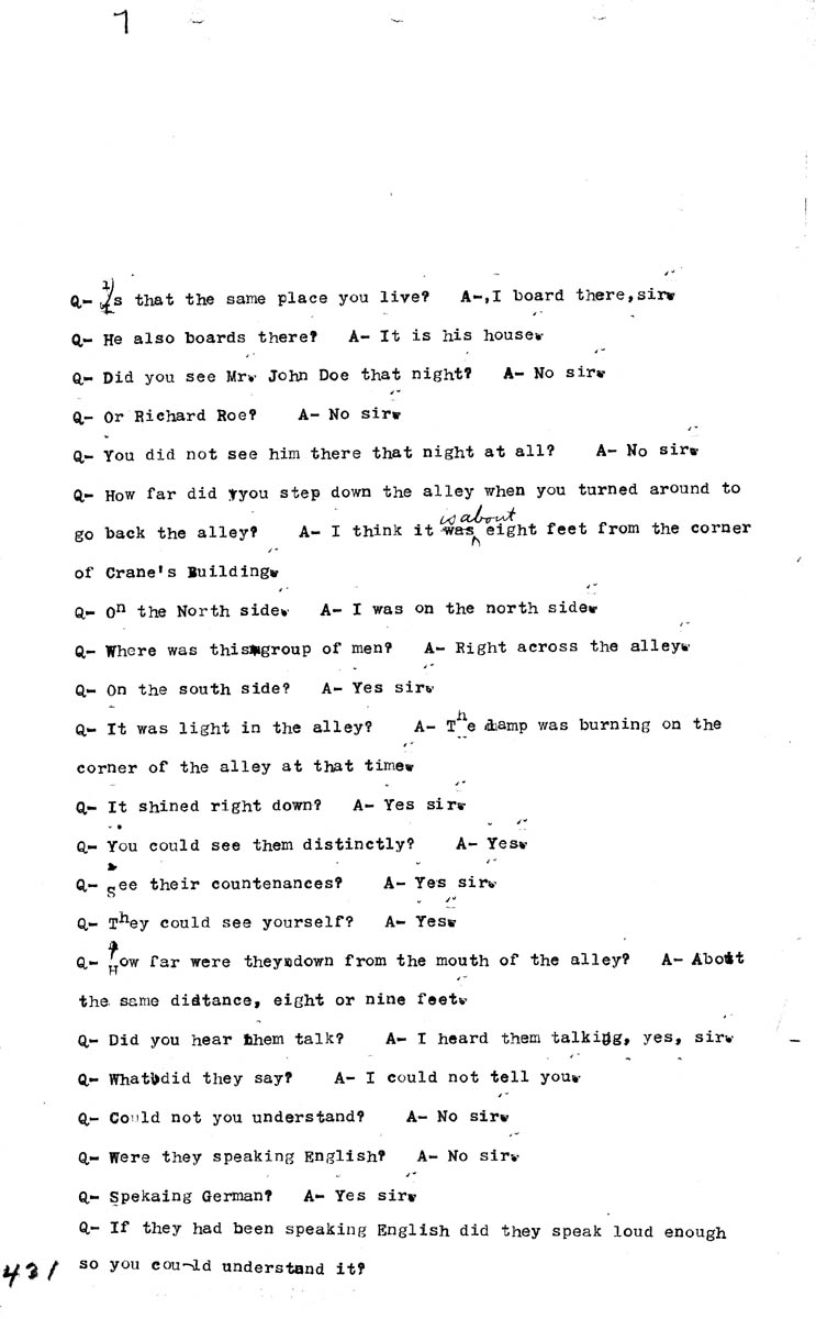 Testimony of Harry L. Gilmer (first appearance) Volume K, Page 431 Higher Quality Image (106K) | Previous Image | Next Image Return to Text | Return to Trial TOC | Return to the HADC Table of Contents